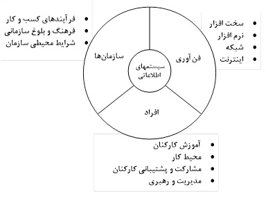 سازمانها: سیستمهای اطلاعاتی، هسته مرکزی سازمانها را تشکیل می دهند. هر چند تصور بر این می باشد که فنآوری اطلاعات است که سازمانها و شرکت ها را تغییر می دهد، اما این رابطه در حقیقت یک ارتباط دو طرفه است. فرهنگ و بلوغ سازمانها بر طرز استفاده از فنآوری تاثیر مستقیم می گذارد. سازمانها معمولاً یک ساختار سلسله مراتبی و هرمی شکل دارند که قدرتها و مسئولیتها در آن مشخص و تفکیک می شود. سطوح بالای این هرم مدیران و متخصصان و سطوح پائینتر کارکنان عملیاتی می باشند. سازمانها از طریق این ساختار و همچنین از طریق فرآیندهای کسبوکار کارها را مشخص و تنظیم میکنند. منظور از فرآیندهای کسبوکار، وظایف و رفتارهایی هستند که از لحاظ منطقی با هم مرتبط بوده و برای تکمیل کار مورد استفاده قرار میگیرند. مانند فرآیند استخدام کارمند جدید، خرید یک محصول، تامین مواد و تجهیزات.